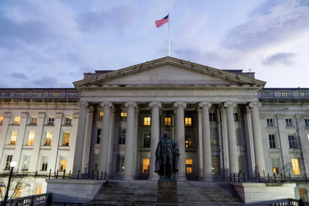 这是1月20日在美国首都华盛顿拍摄的财政部大楼。新华社记者 刘杰 摄